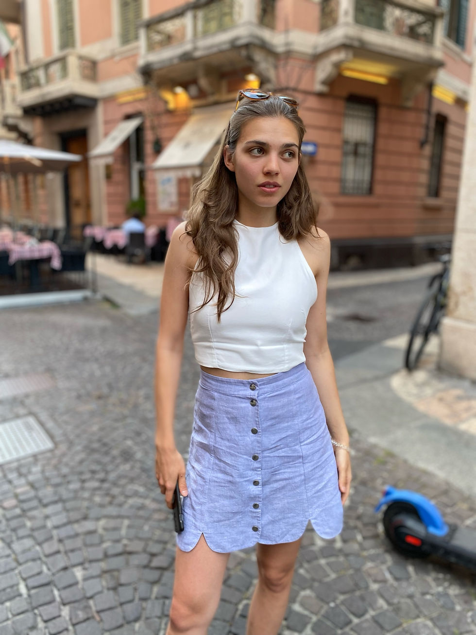 The Loope Top is made from Tencel Twill., the Loope Strap Top from organic cotton and leftover fabrics. Tencel is one of the most sustainable fabrics out there due to very low amount of water used and emissions in the fabrication process.